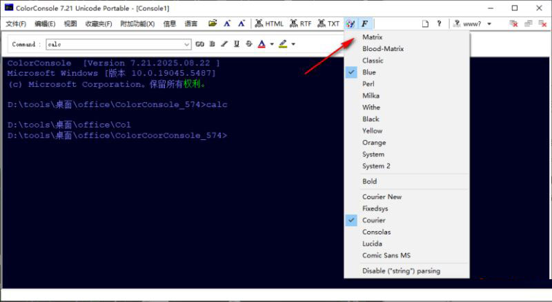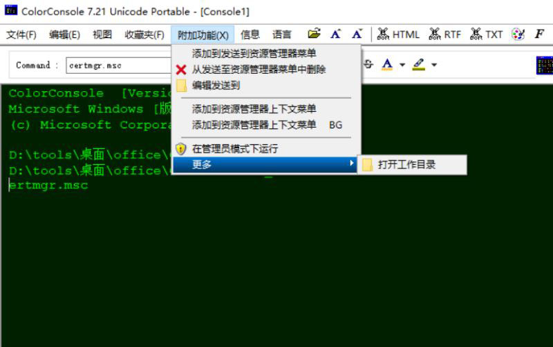 ColorConsole 可以按照Windows的习惯进行粘贴复制操作,当把文件拖到命令提示符里,路径还会自动生成。