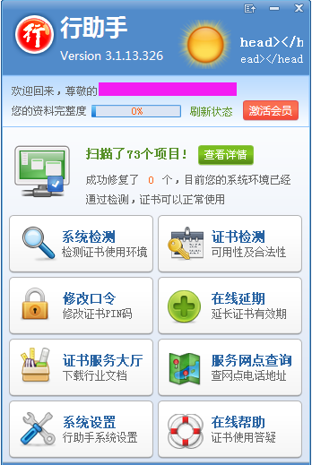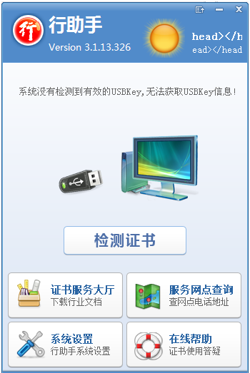 若打开行助手显示如下图所示,代表证书没有检测到,先尝试拔出证书重插几次的方法。