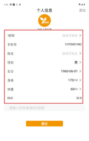 1、进入软件,填写昵称、姓名等信息,点【提交】完善个人资料。