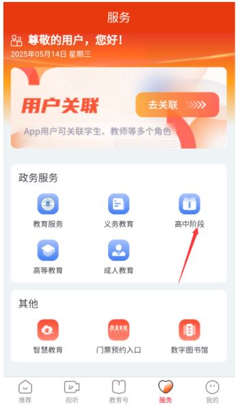 1、在服务板块中点击高中阶段。