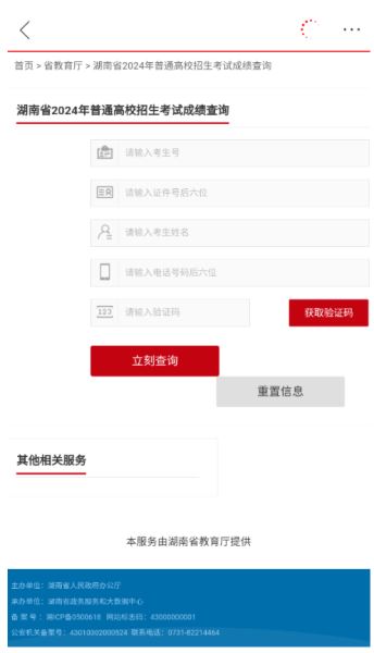 3、输入考生相关信息即可查询(只能查询湖南省地区考生)。