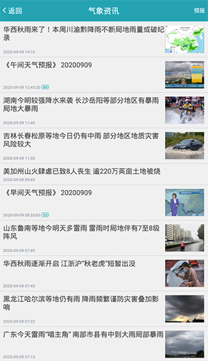 点开气象资讯,可以查看最新的气象资讯;