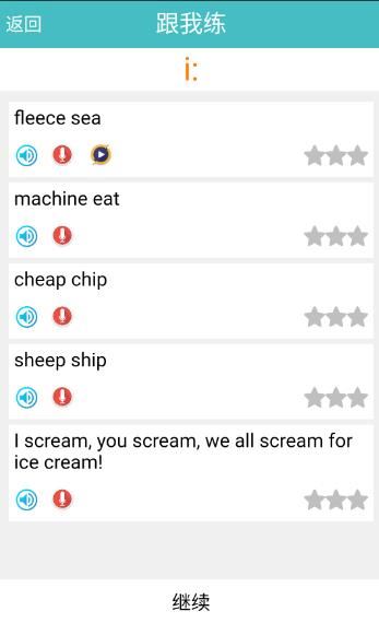 5. 跟读分析:提供单词、短语、绕口令等素材的跟读练习,并快速识别分析