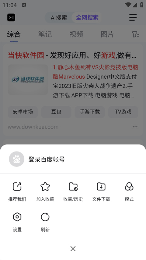3、登录百度账号后,您还可以管理自己的收藏/历史,下载文件以及设置等。