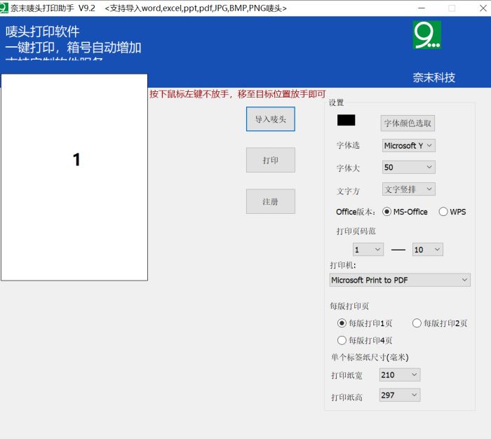 1.奈末唛头打印器官方版打印带有箱号逐次增加的唛头、箱唛。如:1/80、2/80、3/80、4/80.....