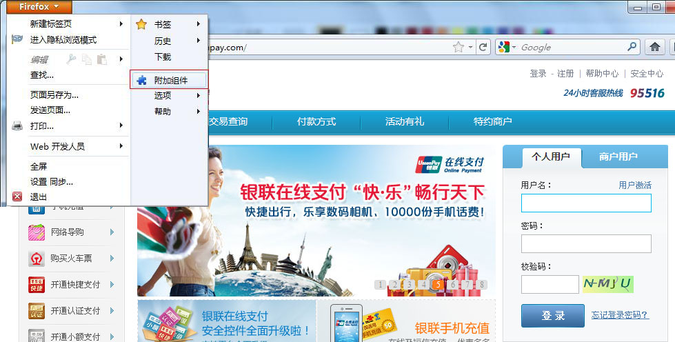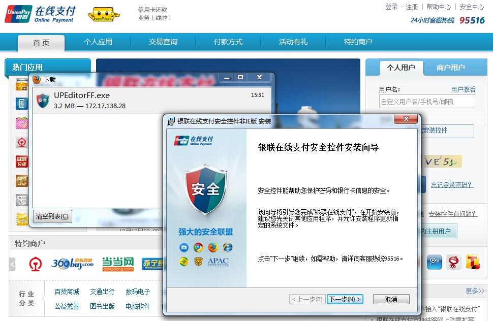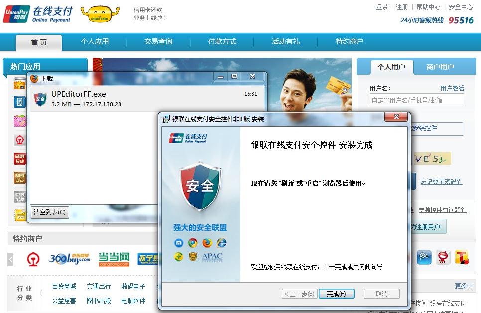 银联在线支付安全控件现支持谷歌Chrome、火狐firefox、苹果Safari以及遨游3、搜狗、qq浏览器等浏览器,为使控件安装顺利完成,安装成功后,按电脑键盘上的F5刷新页面或重启浏览器即可登录银联在线支付。