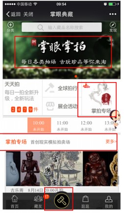 步骤一:点击以下四个标红模块,可进入拍场:
