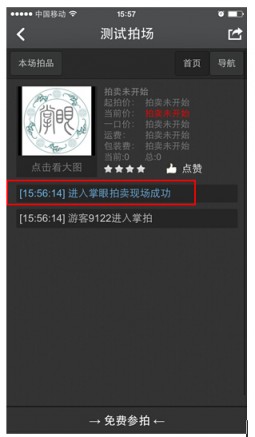 说明:买家进入拍场成功