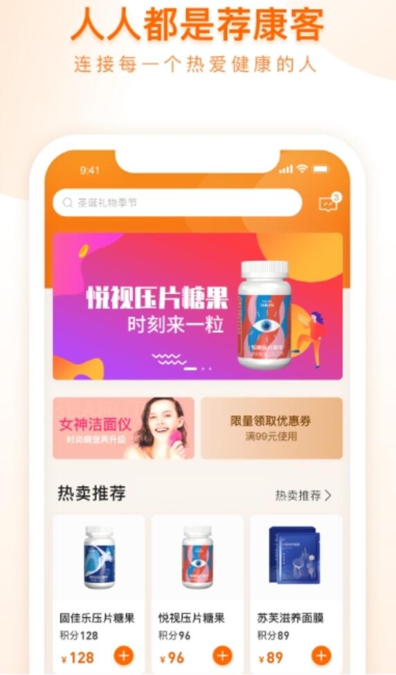 1.覆盖海量健康商品,超值推荐,用户可以自行选择购买