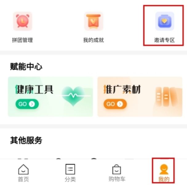 1、在我的页面中点击邀请专区按钮;