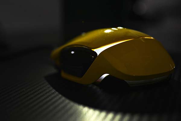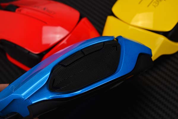 顶部CPI按钮的缝隙中是可以透光的,鼠标巧妙的设计就是让缝隙的灯光把鼠标的整体轮廓勾画出来,科技感立马提升几个档次。
