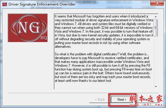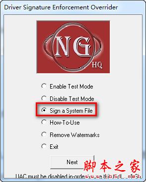 3.再选择第三项“Sign a System File”,点击next。将地址输入即可通过DSEO获得了测试签名认证