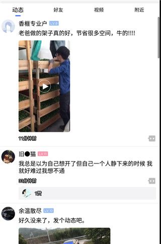 3、点击圈子,用户可以看到最新的动态,还有好友列表、附近和视频功能板块