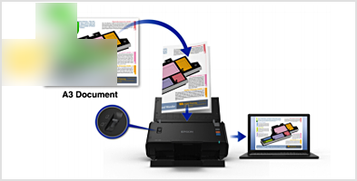 A3 文档对折放入扫描仪,仅仅通过A4扫描仪就能进行A3文档的扫描,方便简单,而且减少了客户的采购成本。