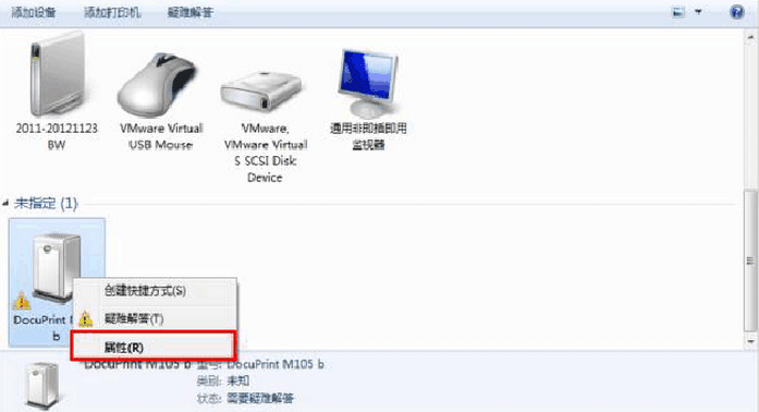 将设备连接至电脑后,在设备和打印机选择打印机,在弹出的菜单中选择属性