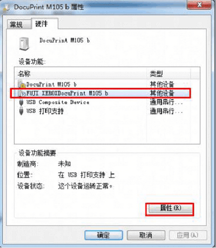 在弹出的菜单中选择硬件标签,选中带问号的选项(打印驱动),点击属性