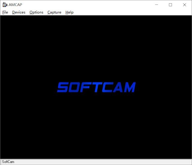 在 SoftCam 安装后系统里面会多出一个名为“SoftCam”的虚拟摄像头,它可以在所有使用摄像头的软件中使用,比如在 AMCap 中显示: