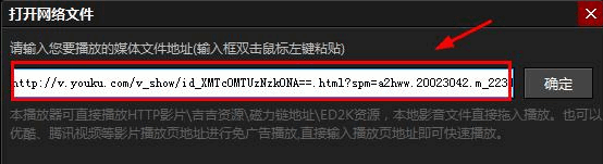 2、在弹出的对话框中输入您要播放视频的网络地址并点击确定即可