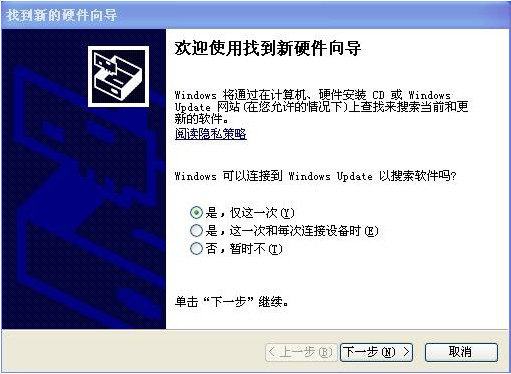选择第一个选项(是,仅此一次),单击下一步,出现: