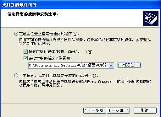 选择在搜索中包括这个位置,点击浏览,选择USB驱动所在的文件夹,单击下一步,出现: