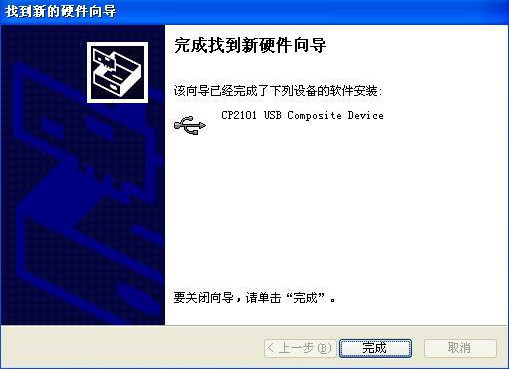 单击完成,则USB驱动安装成功。