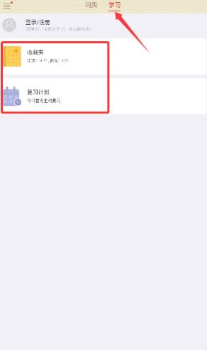 4、切换至学习功能界面可查看个人收藏夹内容与系统生成的复习计划安排。