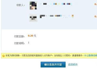 5、输入完需要转账的用户和金额后,点击确认,进入下一个页面,也就是最终确认转账,需要提醒一下的是,该操作是直接转账到收款人的支护宝里的,不可退回不可取消,所以转账前需要再三检查好,方可确认!