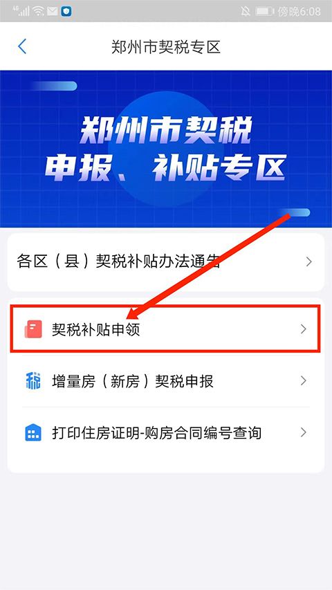 2、进入【郑州市契税专区】界面,选择【契税补贴申领】选项。
