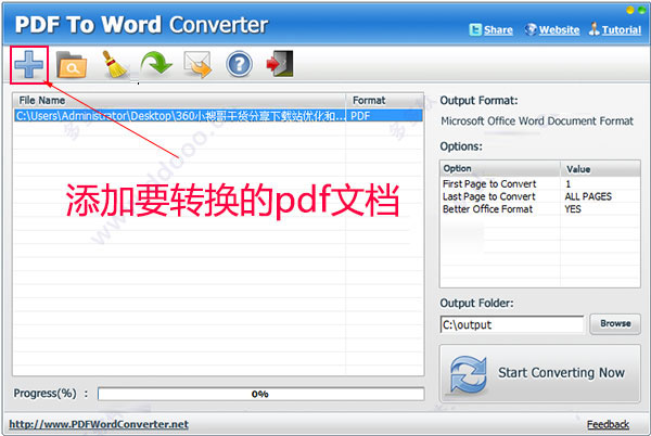 5、至此,pdf to word converter破解版成功激活,用户点击+按纽可以添加pdf文件;