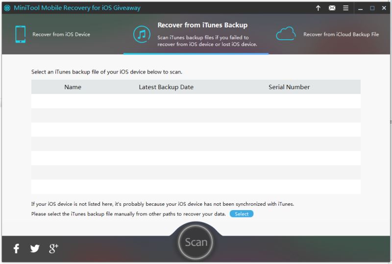 ☉ 本站提供的minitool mobile recovery for ios(数据恢复软件) V1.3 免费安装版(附注册码)资源来源互联网,版权归该下载资源的合法拥有者所有。