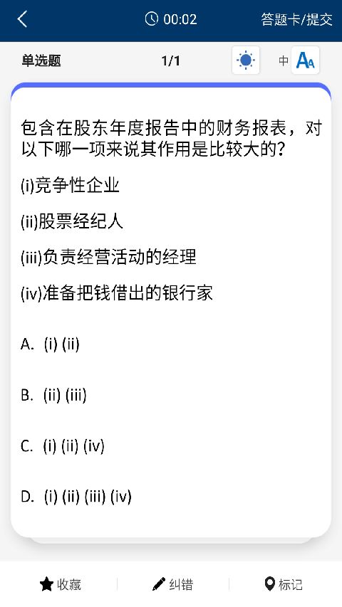想考会计的还在为考题而担忧吗?不用担心,今天小编为大家带来一款CMA智题库app,该软件是一款专为准备考管理会计的考生朋友量身打造的手机学习软件,软件里面收集的CMA考试题库非常全面,不仅有很详细的历年考题,为备考人员带来强有力的前突击。同时CMA智题库app还有海量习题可供用户练习,它还收录了历年考试真题,用户可以进行实战模拟及时发现自己的知识薄弱点;还有贴心的答疑模块,可以向一起备考的其他人进行咨询外,还有名师线上解答哦。还有知识点练习、智能选题和真题模考等功能板块,为相关备考人员提供考前突击支持;拥有专业的CMA研究生课程,用户可以根据自己的情况选择合适的课程进行学习。