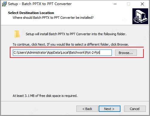 默认安装目录【C:\Users\Administrator\AppData\Local\Batchwork\Ppt-2-Ppt】