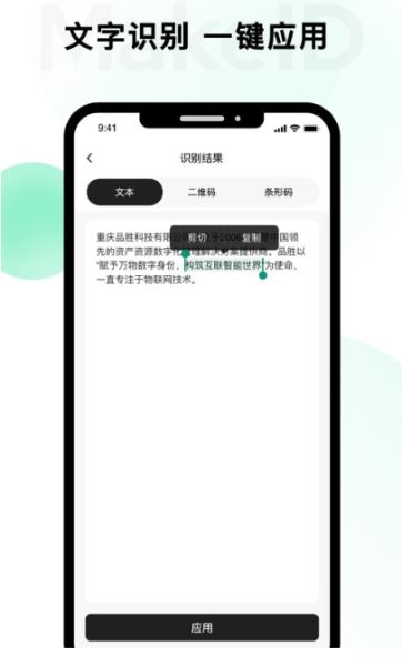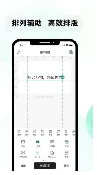 MakeID(原伟文标记)是一款提供移动、便携、智能打印服务,集标签设计、管理一体的软件。根据不同应用场景,快速设计各种标签。通过手机蓝牙或WIFI连接品胜打印机设备,是便携打印领域领先的智能服务平台。