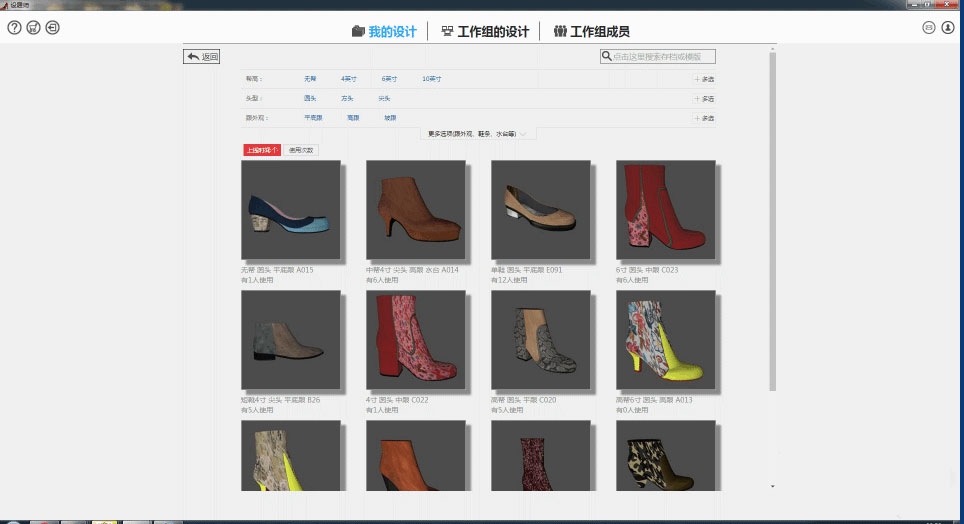 界面清晰易懂,可以迅速的选出符合自己要求的鞋子模版,单击模版图片即可进入软件的编辑界面。