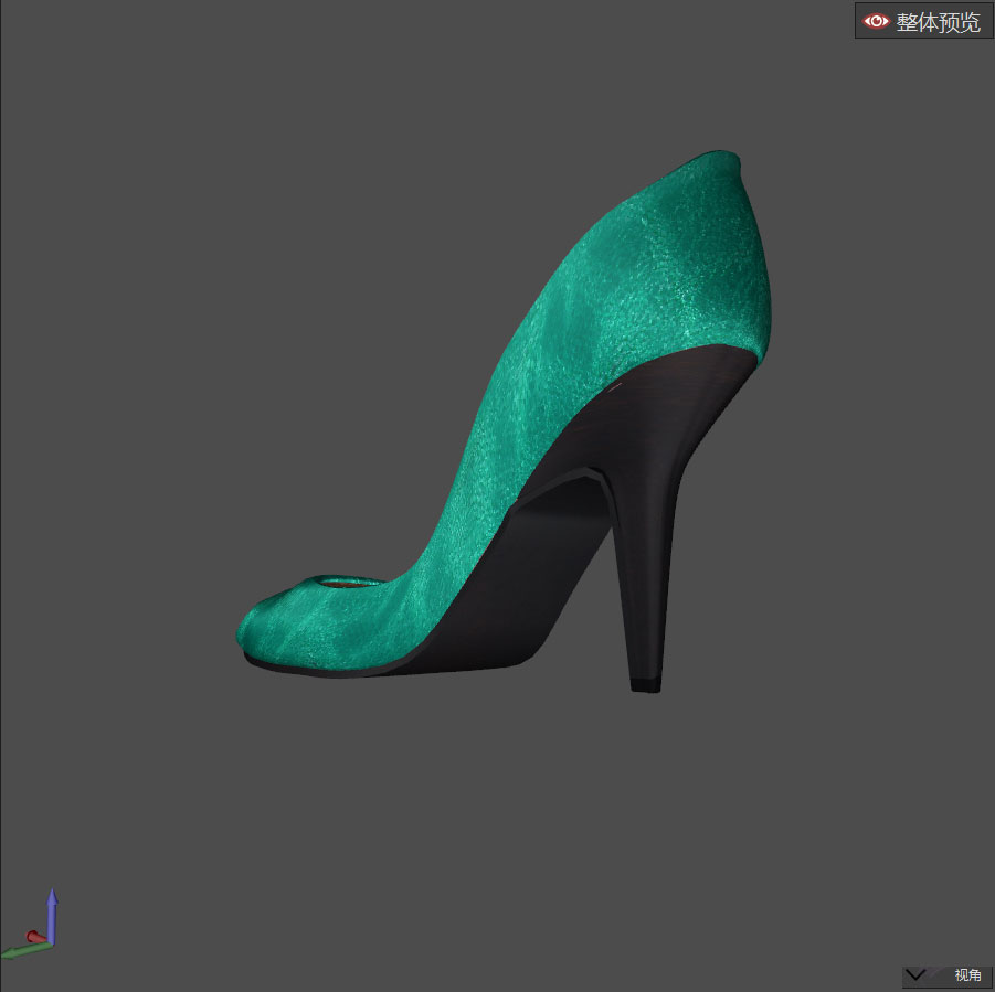 4.1.11.2 组件选择区,可以选择调整和修改楦型、结构、面料、装饰,所选择的组件会在模型中高亮显示,如下图所示: