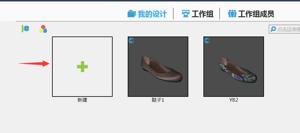 2、中间为页面切换区,分别为:我的设计、工作组的设计、工作组成员,位置如下图: