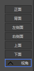 视角:位于主操作区的右下方,鼠标单击“视角”按钮出现下拉菜单,可在下拉菜单中直接选择所需要呈现的视角,包括正面、背面、左侧面、右侧面、上面、底面共6个视角可选,如下图: