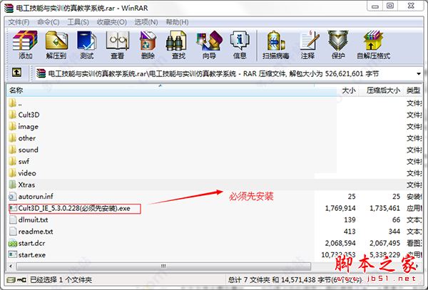 安装电工技能与实训仿真教学系统之前,一定要先安装"cult3d_ie_5.3.0.228.exe"文件,否则软件将无法正常运行。