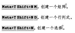 这个菜单条目输入的是像a^2+b^2=c^2那样嵌在文本段落中的简短公式。注意公式是一种特殊的排版方式,不会占用过多的垂直方向上的空间。比如求和符号的上下界限往往处于右边(sum^n_(i=1))。此时选中整个数学公式,再在格式→数学→展示风格中选择打开,求和符号的界限就会显示在其上下两侧(sum^n_(i=1))。缺省情况下,展示风格是关闭的。