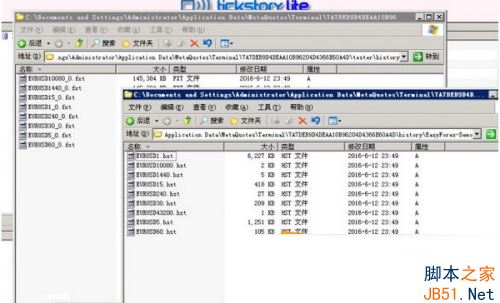 看,这两个目录里也有了数据,这时候先不要启动MT4,先把数据锁定,不然一连网你辛辛苦苦下的数据很可能就被冲掉了!