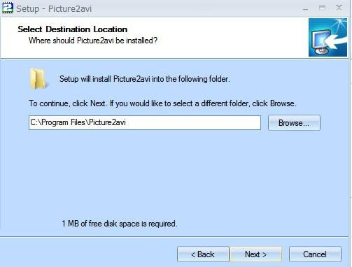 3、继续next设置软件安装目录,默认为“C:\Program Files\Picture2avi”
