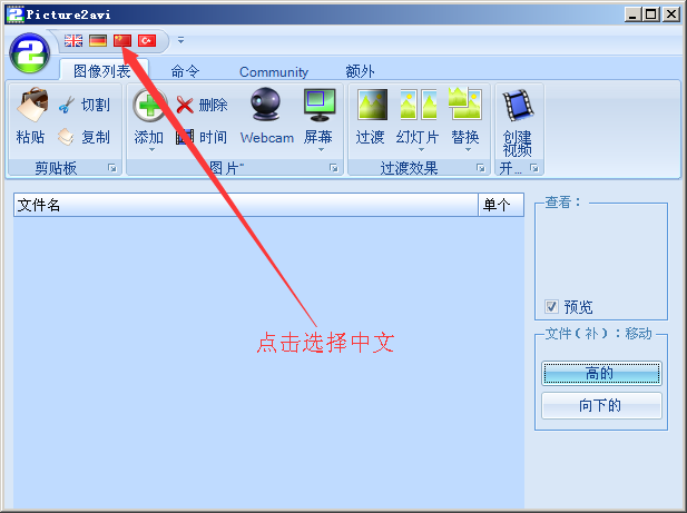 3、Picture2avi还内置了一些视频转场特效,例如淡入淡出等。支持任何可兼容的编码器,并能自动选择编码器。
