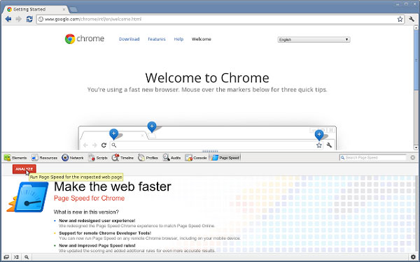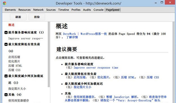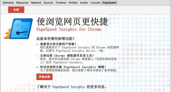 2.PageSpeed Insights插件会存在于Chrome的开发者工具选项卡中,在Chrome的开发者工具还存在着其他的网站调试功能,用户可以尝试着使用它们,并开发出更加完美的网站。