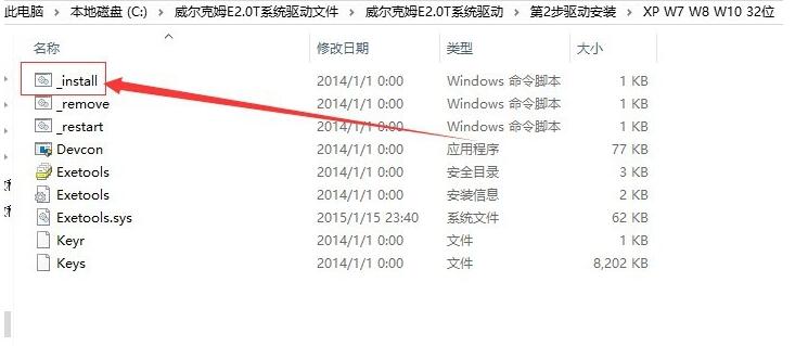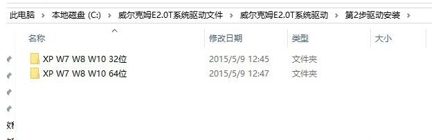 2、再打开【第二部驱动安装】,注意里面有两个文件夹,根据您的系统来选择32位的还是64位的文件夹,然后双击打开install文件