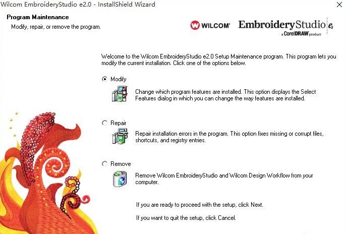 5、接下来就进入安装界面了,有的朋友看到这个界面一度以为是不是搞错了软件,怎么是cdr的软件呢,其实这个是威尔克姆自带的cdr软件,之后才安装威尔克姆e2.0,这一步完成之后它提示你是否重启,选择【不】