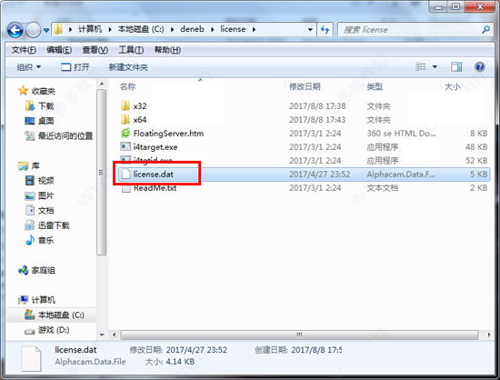 3、安装完成后,打开“_SolidSQUAD_”目录,将许可文件“license.dat”复制到C:\deneb\license目录下即可完成破解