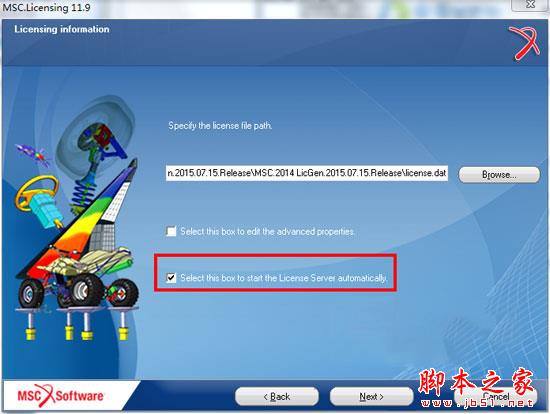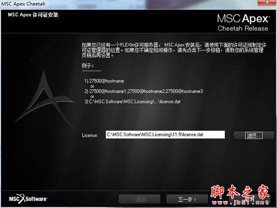 14、点击Borwse...,选择C:\MSC.Software\MSC.Licensing\11.9\目录下的“license.dat"文件,然后等待安装完成即可,MSC Apex 2015中文破解版安装完成。