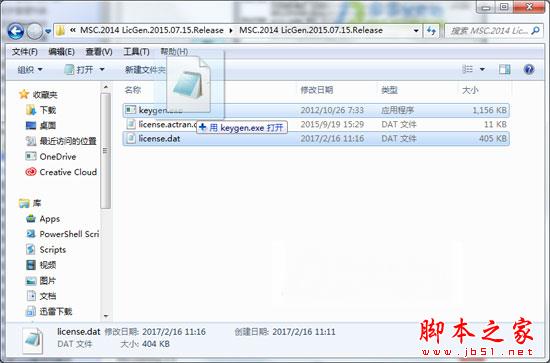 4、修改完成后,将“license.dat”拖到“keygen.exe”上面