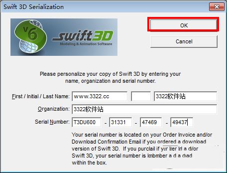 3、打开swift 3d中文版,将其输入到如下图,然后点击“ok”