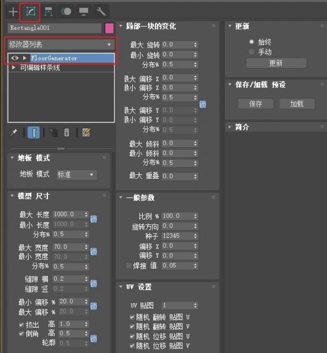 FloorGenerator是一个3DS MAX的地板地面纹理生成脚本插件,可以制作多种多样纹理的模板地面等,对室内建筑建模十分节约时间。生成平面对象组成的平面可以很容易地使用多重纹理,如果你在做建筑可视化和需要做地板的,你可以近距离看到这是一个伟大的工具。